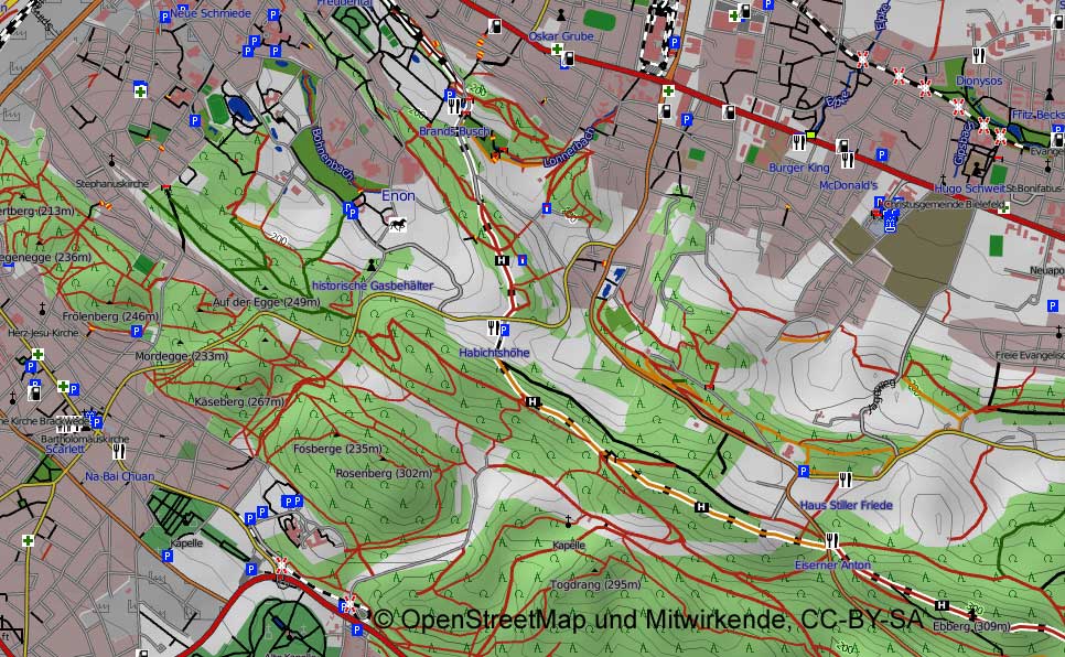 Fig. 1 ¹: Fahrradkarte: Fahrradwege, Radwanderwege, Höhenlinien: www.opencyclemap.de